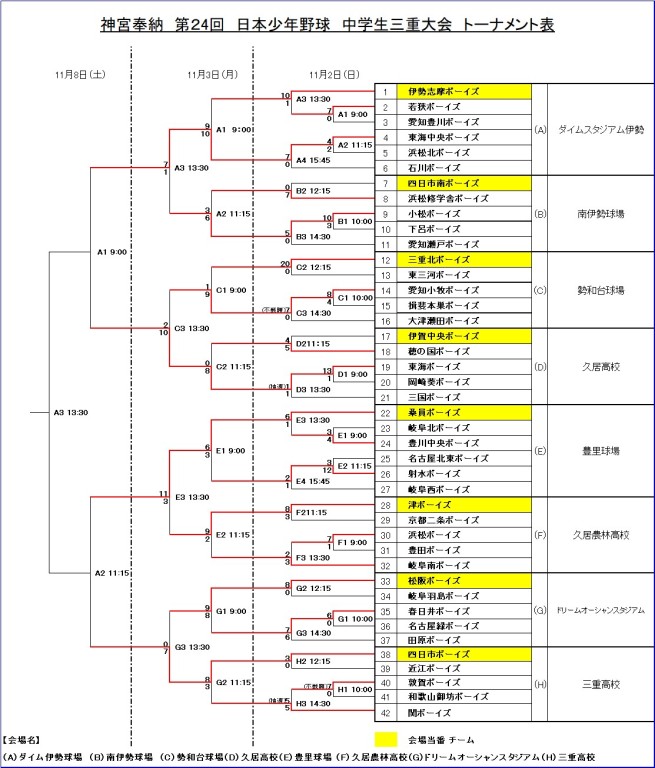 注目の準決勝・決勝は11月8日(土)伊勢市のダイムスタジアム伊勢でプレイボール!!