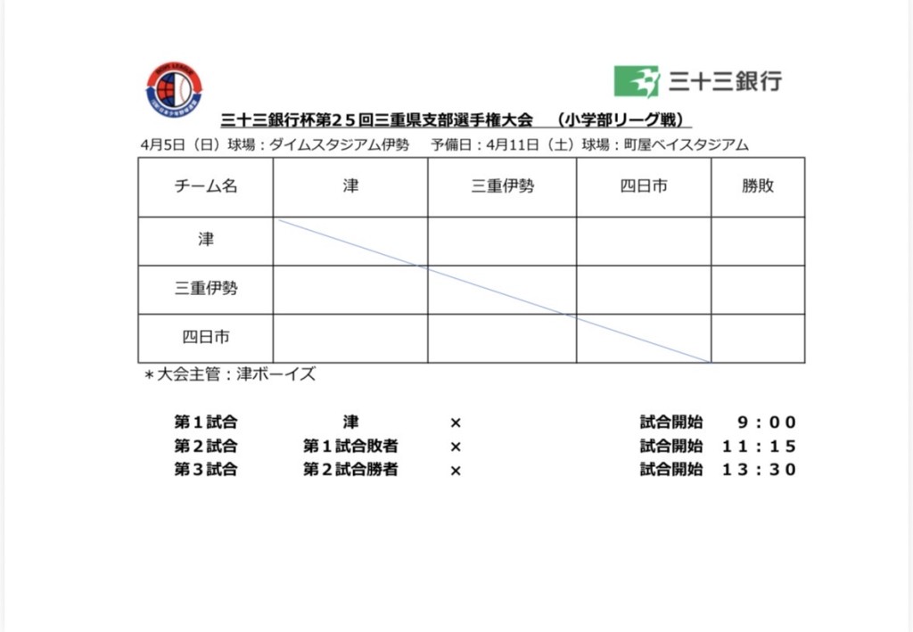 四日市霞ヶ浦第三野球場にて行われた第2回ウルフィキャラバン旗・サラスポーツ杯争奪兼スターゼンカップ第56回日本少年野球春季大会代表決定戦において津ボーイズが見事に勝利し、三重県に代表旗を持ち帰ってくれました!!