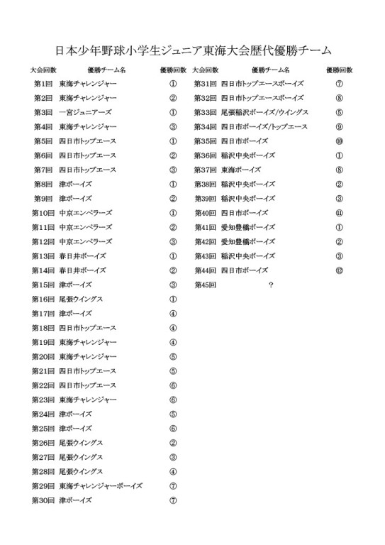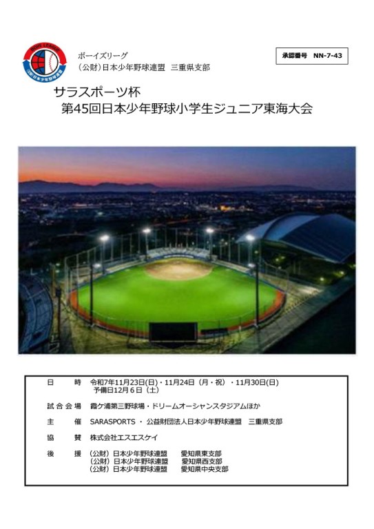 サラスポーツ杯 第45回日本少年野球小学生ジュニア東海大会が閉幕いたしました。
